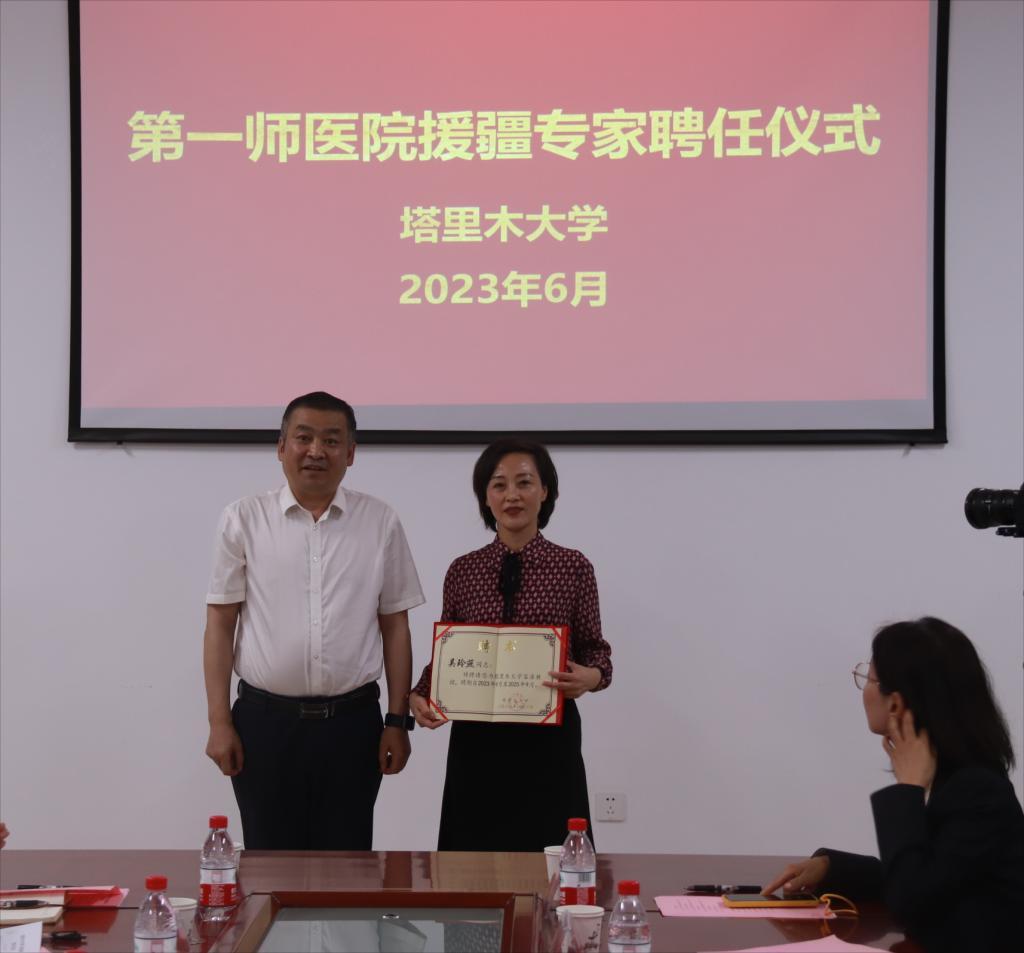 陈大进表示,感谢塔里木大学对各位援疆专家的信任与厚爱,以及对第一师医院教学工作的大力支持。坚信各位援疆专家会广泛参与临床教学工作,促进教资教学;为塔里木大学医学生提供浙大教学同质化服务。真诚期待第一师医院与塔里木大学合作更加紧密,希望进一步加强医院与高校的教学、科研合作。