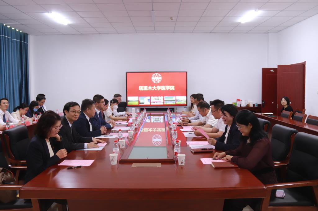6月1日下午,塔里木大学客座教授及外聘教师聘任仪式在医科楼A308会议室举行,校党委常委、副校长石长青出席并讲话,新疆生产建设兵团第一师医院党委副书记、院长、“组团式”医疗援疆领队陈大进一行参加聘任仪式。校党委教师工作部部长杨保求及医学院领导参加。医学院党委书记孟琪致欢迎辞。医学院党委副书记、院长王琳琳主持聘任仪式。