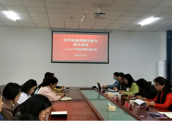为深入贯彻落实习近平新时代中国特色社会主义思想,提升学院青年教师教学能力及实验教学水平,4月25日医学院举行优秀青年教师教学竞赛经验交流会,学院银龄教师,青年教师参会。会议由教务办公室主任朱金焕主持,在医科楼A308会议室举行。