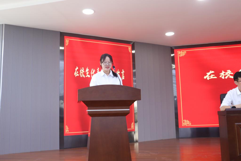 在校生代表、预防医学2022级1班杨金花发言说:“作为医学生的我们一定会踔厉奋发,笃行不怠,不忘初心,激励自己在医学道路上继续努力奋斗,不断前进。”