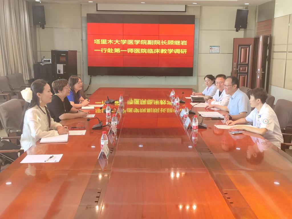 8月24日,塔里木大学医学院副院长顾继岩前往第一师医院进行临床教学调研,并与第一师医院领导交流座谈、检查临床教学材料、实地参观医院教学设施,深入了解医院临床教学准备情况。