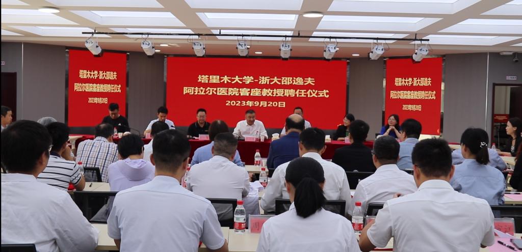 9月20日下午,塔里木大学客座教授聘任仪式在医科楼A504报告厅举行,校党委常委、副校长石长青出席并讲话,浙大邵逸夫阿拉尔医院张雷院长等39位援疆医疗队专家参加聘任仪式,校党委教师工作部部长、人事处处长杨保求及医学院各办公室负责同志参加会议。医学院党委书记孟琪主持聘任仪式。