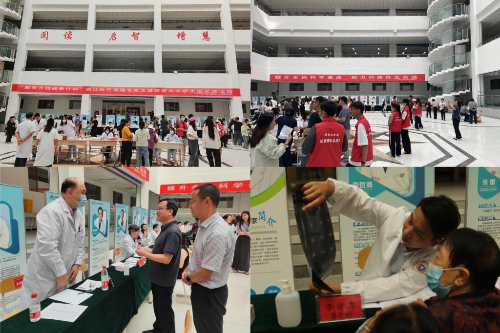 为全面学习贯彻习近平新时代中国特色社会主义思想主题教育,9月20日下午,医学院、校工会和浙大邵逸夫阿拉尔医院在塔里木大学图书信息楼共同举办“服务百姓健康行动”浙江医疗专家大型义诊科普活动。此次活动以“提升全民科学素质 助力科技自立自强”为主题。