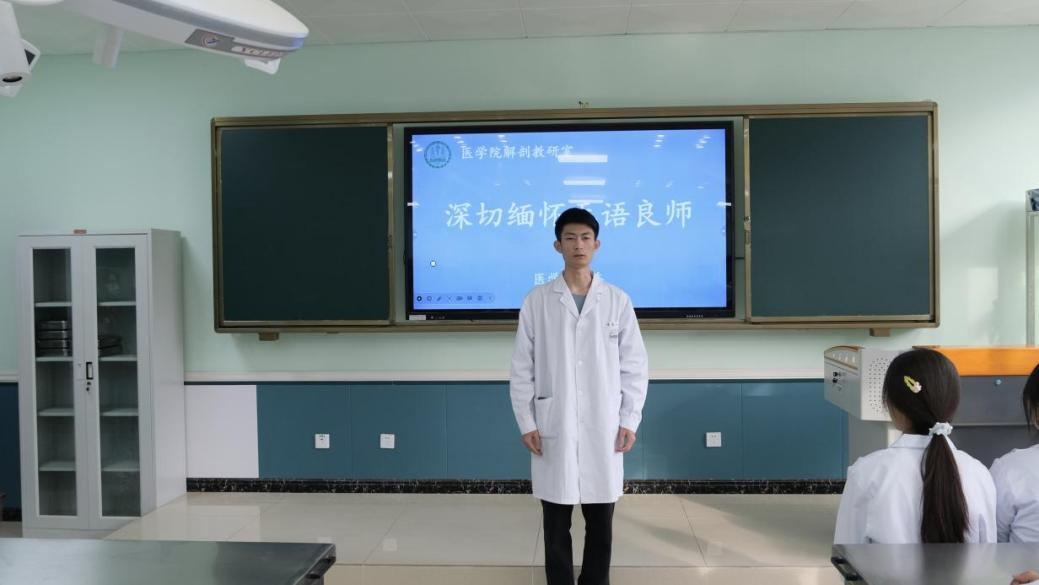解剖教研室王平老师介绍,没有解剖学,就没有医学,解剖学为医学生成长为医生奠定了坚实基础,我们要感激大体老师在探索医学过程中给予的无私帮助,对生命保持敬畏,心怀感恩。“医者德为先,技为本,魂为镜”,同学们需要修好医德,学好解剖,努力提升自己,励志成为医学栋梁,积极投身于医疗卫生事业发展。