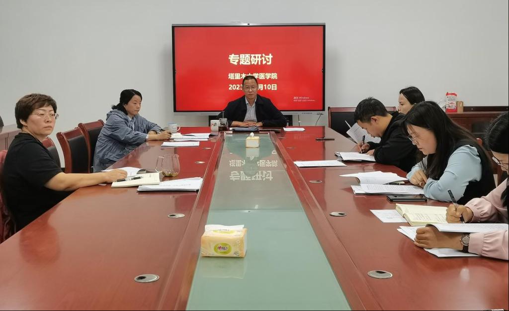 10月10日上午,医学院在A308会议室召开党委理论学习中心组学习专题研讨会,医学院党委领导班子和委员参加会议,各办公室科级干部和支部书记列席参加学习会议,会议由学院党委书记孟琪主持。
