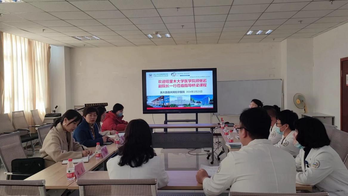 座谈会中,顾继岩听取了浙大邵逸夫医院课程准备、课程开设、教室改建、师资培训等临床教学情况后,感谢浙大邵逸夫医院为塔里木大学医学院的教学工作提供的大力支持。希望在今后的教学工作中,深入合作,共同进步,实现共赢。