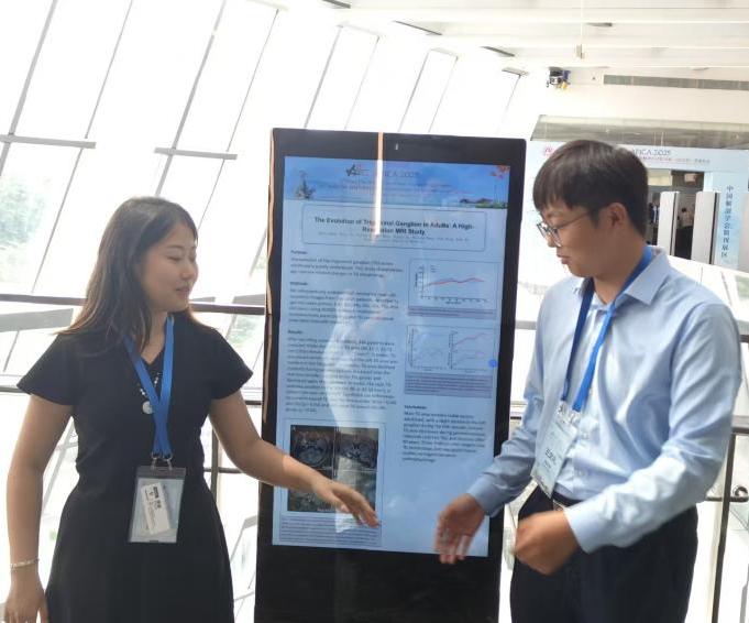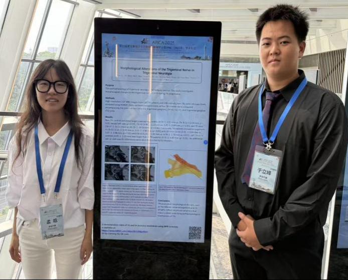 我校2022级临床医学本科生于立峰和王文礼分别以壁报展示其研究成果《The Evolution of Trigeminal Ganglion in Adults: A High-Resolution MRI Studys》和《Morphological Alterations of the Trigeminal Nerve in Trigeminal Neuralgia》。