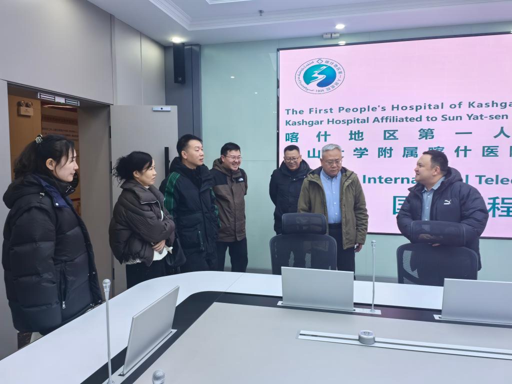 期间,谢建新一行在廖新曙等领导陪同下,参观了国家区域医疗中心、喀地一院中山大学附属喀什医院、中山大学国际眼科医学中心、国际远程医疗中心等建设情况。