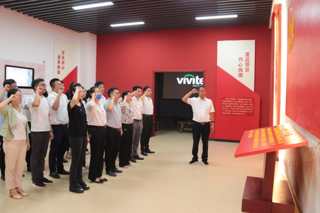 最后,由医学院党委书记孟琪带领医学院全体党员列队肃立,面对党旗,举起右拳,重温入党誓词。
