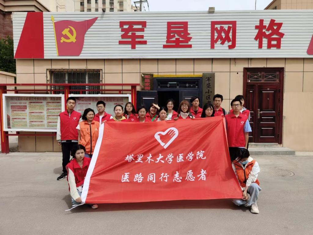 5月27日,“医路同行”志愿者团成员在金银川路街道社工站负责人的带领下,来到军垦小区进行探访慰问老人的活动。