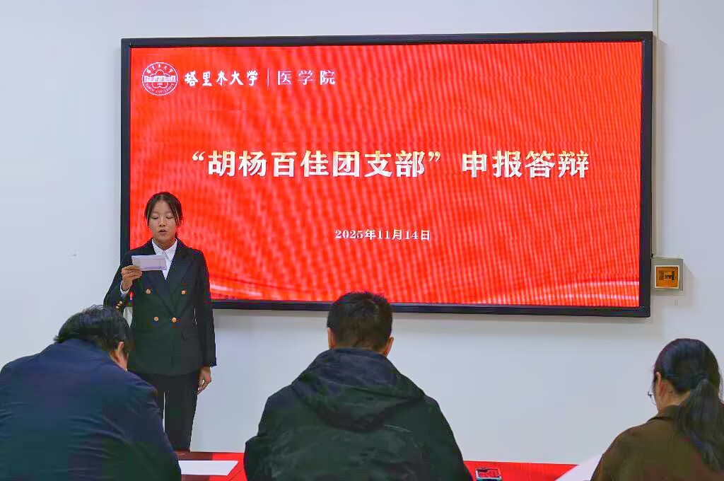 11月14日,医学院“胡杨百佳团支部”申报答辩在医科楼A207教室举行。活动由陈文彬、陈智军、高培珍3位老师担任评委,2024级临床医学1班、2024级临床医学2班、2024级护理1班以及2025级临床医学5班团支部代表参与现场展示与答辩。