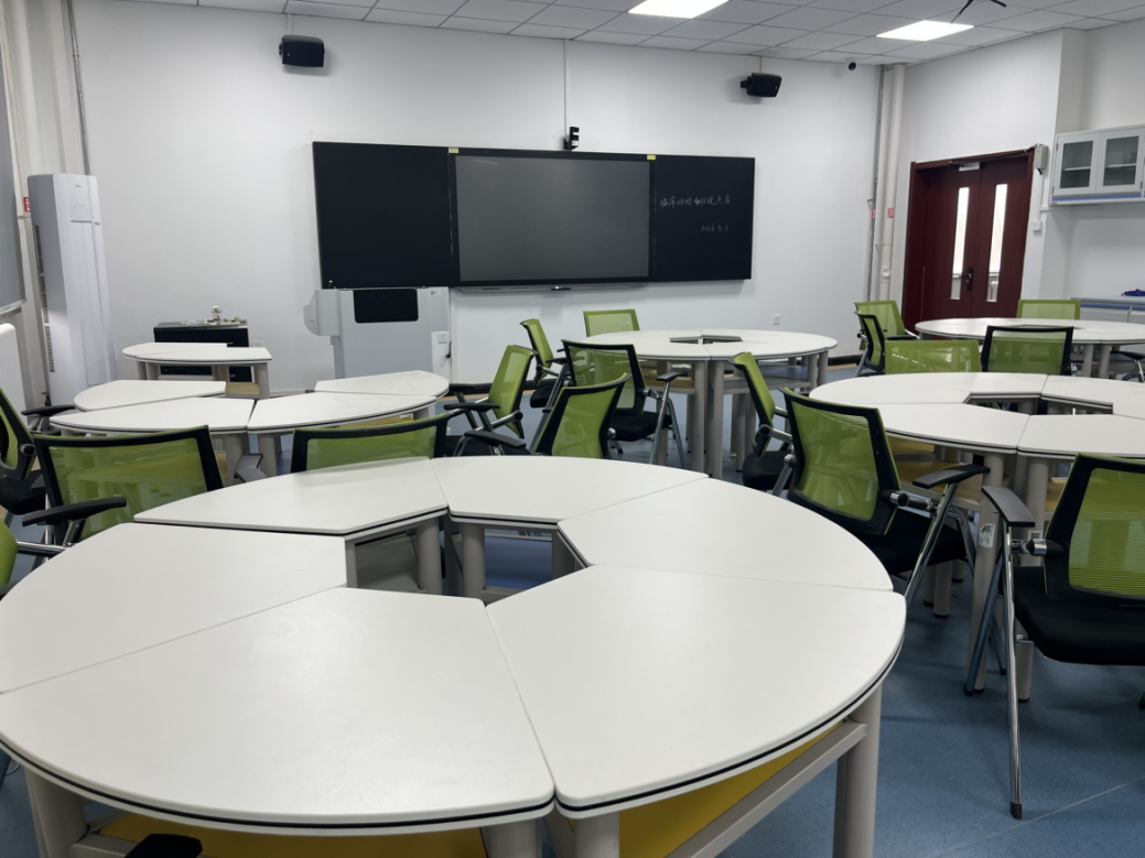 医科楼A312学习空间主打小组协作功能,可容纳48人。室内科学设置8张圆桌,每桌可供6人使用,并配备黑板、空调等设施,环境温馨舒适,特别适合医学专业学生开展课题研讨与小组学习。
